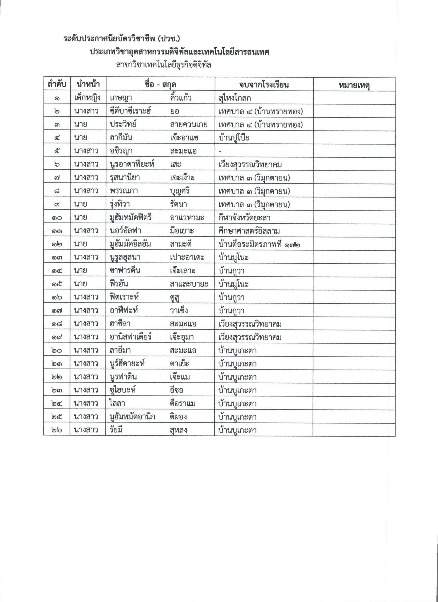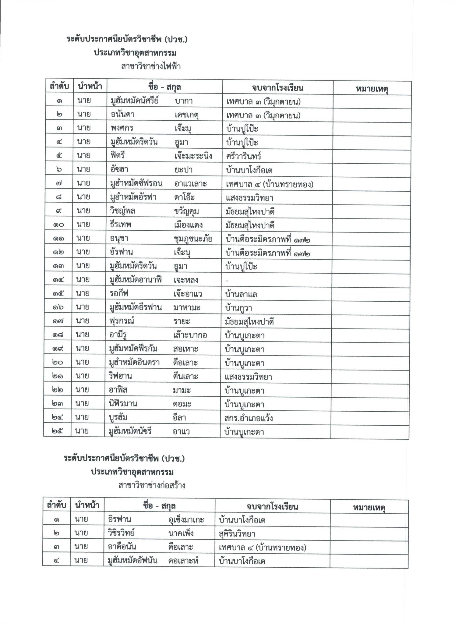 ประกาศวิทยาลัยการอาชีพสุไหงโก-ลก
